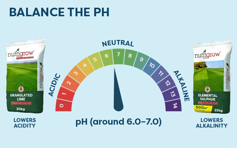 Soil that is too acidic requires lime and soil that is too alkaline requires elemental sulphur. Apply at the rates shown in the instructions for an instant amendment.